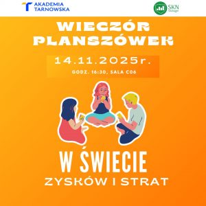 Planszówkowy wieczór przed nami! 🎲📚 Wpadajcie 14 listopada o godz. 16:30 do sali C06 na Akademii Tarnowskiej!